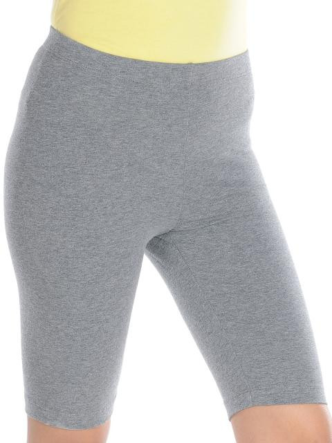 Grey cotton and lycra mix fabric shorts, with branding on left thigh