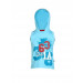 Light blue sleeveless hooded jacket made of 100% cotton, with applique and graphic print on the front, and fabric tape inseam on the neckline