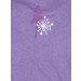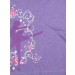 Purple round neck top made of 100% cotton, with pink mock lining, short puffed sleeves with ruffles at the elasticated hem, little graphiti below the nape of the neck and shimmer print on the chest