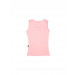 Pink sleeveless round neck top made of 100% cotton with pink and silver rosette details along the neckline
