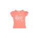 Peach round neck top made of 100% cotton, has short sleeves and graphic print and sequin details on the chest