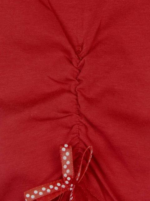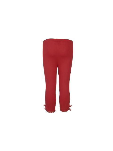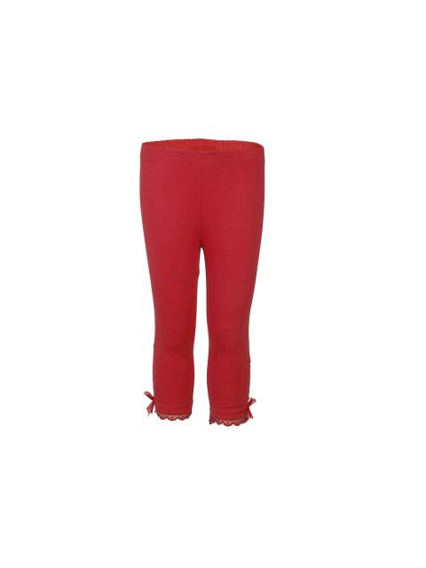 Red leggings made of 100% cotton, has ruched hem with polka dotted satin bows and lace detailing