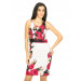 Red, white and green printed sleeveless dress made of 100% linen, has an empire waist with a broad band, inner lining and a keyhole with a button closure at the back