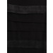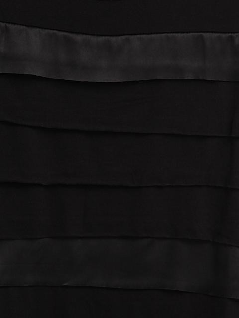 Black knit dress, sleeveless, round neck, horizontal bands of synthetic and single jersey knit fabric on front
