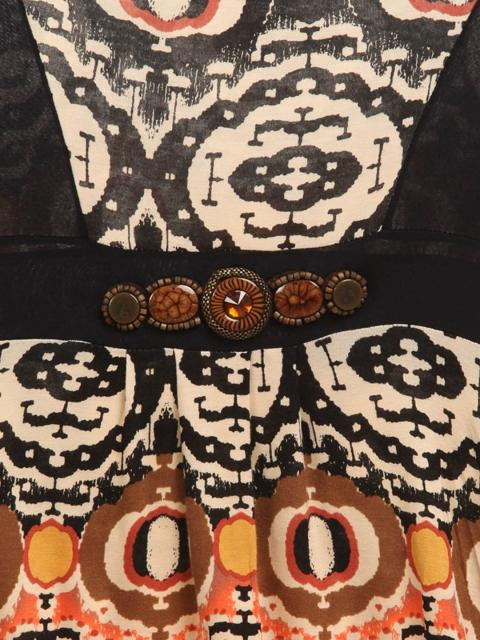 Multi coloured sleeveless dress, has a round neckline and beaded embellishments below the bust