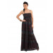 Black printed, woven, full length dress, has a straight neckline, removable and adjustable spaghetti straps and elasticated smocking in front and back till below the bust