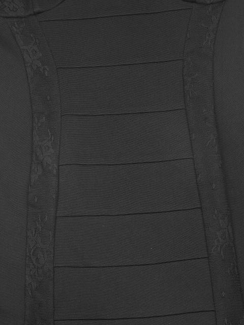 Black strappy dress made of 79% viscose, 15% mylon and 6% elastane, in a corset structure with horizontal panels on the front and lace trims made of 100% nylon