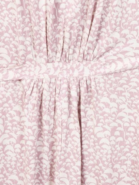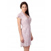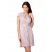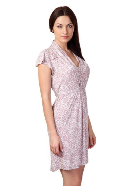White and mauve printed, knit dress, V neck, flutter sleeves , built up neck, tie up below chest and yoke at front