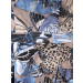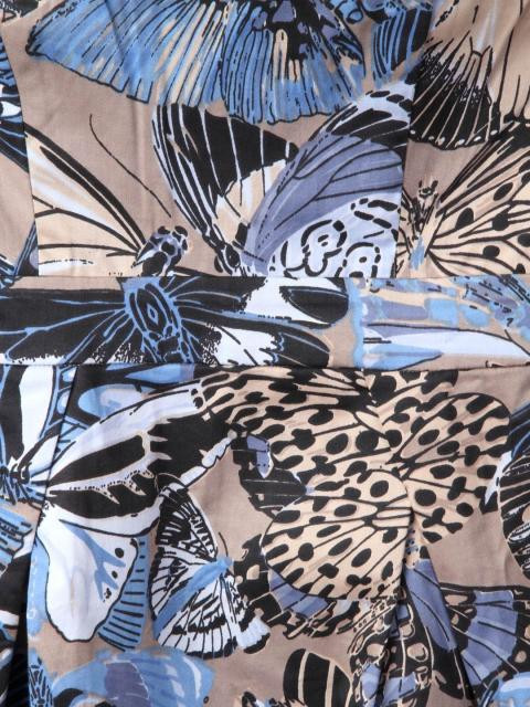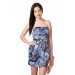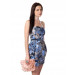 Blue tube dress with prints, zipper closure at the back, stitched waistband with pleats in front and pockets on side seams.