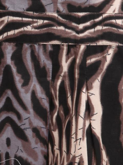 Brown, blue, black and cream printed dress has a sweetheart neckline, sleeveless, woven, pleats in front and back and zipped closure on the right side below the arm hole