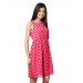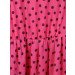 Pink polka dot dress with black dots made of crepe chiffon, sleeveless, wide round neck, fully lined, gathered to elasticated waist and fabric belt at the back
