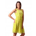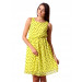 Sunshine yellow dress with black spots made of crepe chiffon, sleeveless, wide round neck, fully lined, gathered to elasticated waist and with tie belt at waist at back