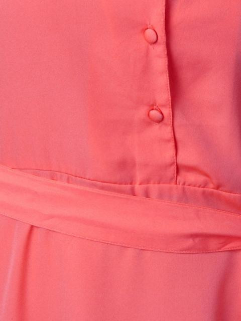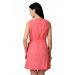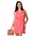 Coral pink coloured sleeveless dress with a half buttoned placket, flaring skirt and a fabric belt