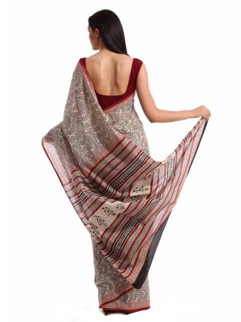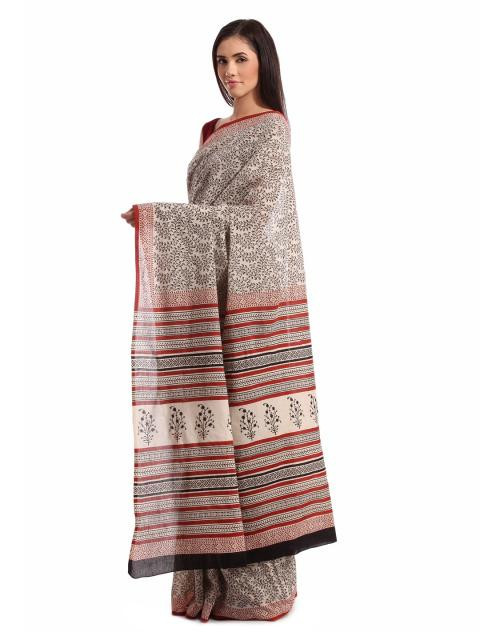 fabindia's natural, craft-based pieces reference the style of the contemporary using ethnic garments and fabric. This sari perfectly captures the traditional mood of the moment with its styling and colour patterning. This beautiful piece has been hand block printed - a lengthy process which ensures that each sari has a unique hand-crafted touch. Choose this sari to express your appreciation of traditional techniques and to support Indian craftspeople who are keeping these art forms alive.