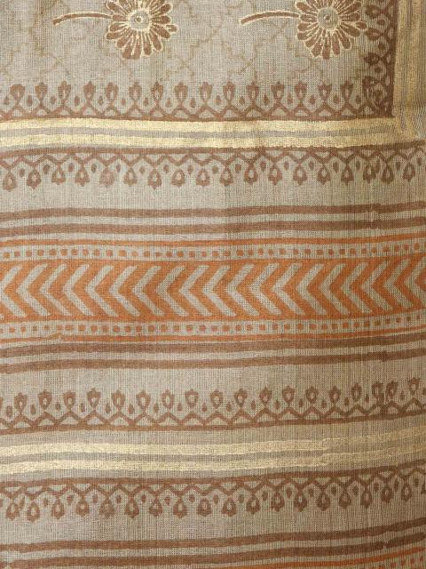 Brown printed dupatta made of silk with tassels on the ends