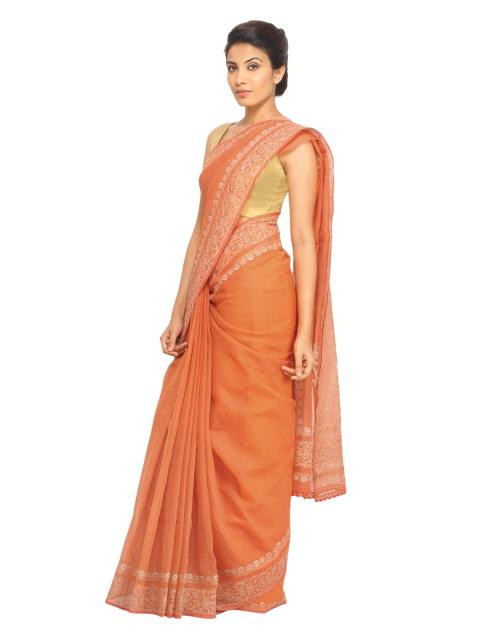 Orange saree, has a printed border