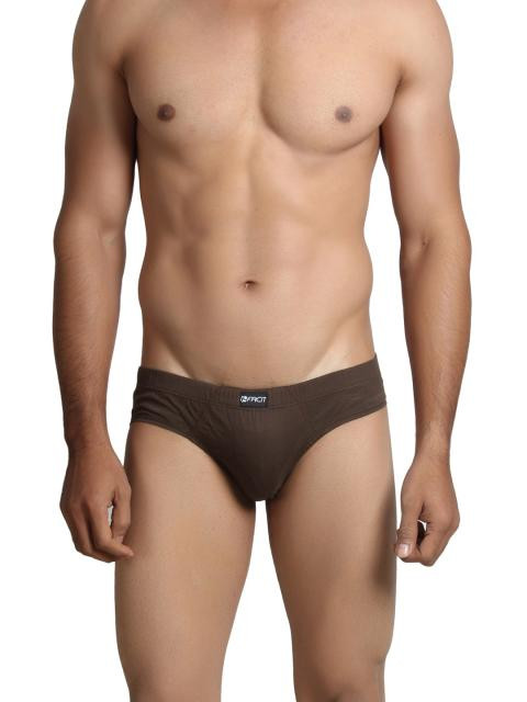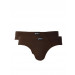 Brown jersey brief made of 100% premium cotton, has a wide comfortable elasticated waistband with an appliqued brand tab, high cut design and printed label on the inner