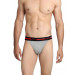 Grey string bikini briefs, has a signature logo elastic waistband in a contrast colour, minimum front coverage with full back coverage and double layered front