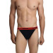 Navy blue string bikini briefs, has a signature logo elastic waistband in a contrast colour, minimum front coverage with full back coverage and double layered front