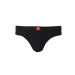 Black bikini made of 100% premium cotton in a 2X1 rib, has a fabric covered elastic waistband with brand tab on the front, double layered contoured pouch, flat seam details and printed label on the inner