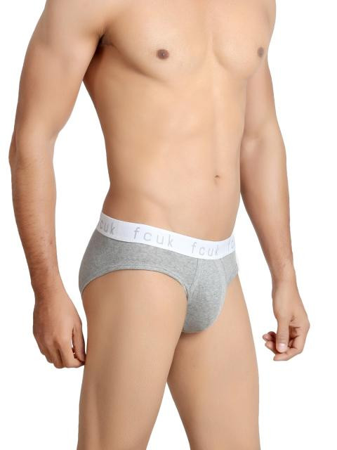 Grey briefs, has a low rise, soft elasticated waistband with branding on it, tagless comfort and double layered enhanced pouch for better shape retention