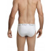 White briefs, has a low rise, soft elasticated waistband with branding on it, tagless comfort and double layered pouch