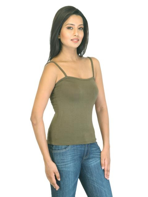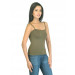 Olive green spaghetti strap top, has adjustable straps and a straight neckline