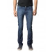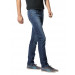 Blue jeans with a washed look, has two insert pockets on the front with brand logo embroidered above the left pocket and brand name appliqued on the right side pocket, two patch pockets on the back with embroidered detailing, brand name appliqued on the waist at the back, belt loops on waistband and a metal zipper and button closure on the front