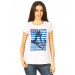 White round neck t-shirt made of 100% cotton, has short sleeves and graphic print on the front