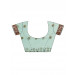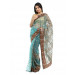Blue netted sari with gold embroidery on the body, red intricate embroidery on the borders