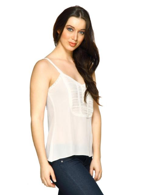 Take feminine dressing to the next level with this white camisole from forever new. The soft billowy fabric, and lace bib give it a dreamy feel. Team this top with cigarette pants and kitten heels for the perfect look.