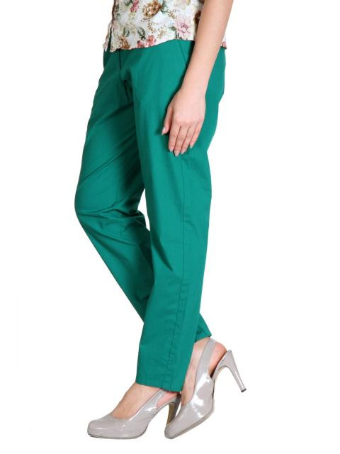 Green trousers with buttoned and zipped closure, two side pockets, mock welt back pockets