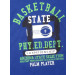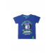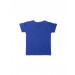 Royal blue round neck T-shirt, has short sleeves, graphic print on the front, and brand tag on the hem