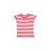 Peachy pink and grey striped round neck top, has cap sleeves and embroidery and applique on the left chest