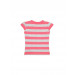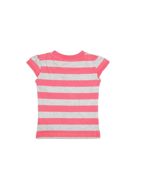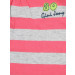 Peachy pink and grey striped round neck top, has cap sleeves and embroidery and applique on the left chest