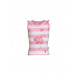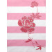 Pink and white striped round neck top, has ruffled cap sleeves and print on the chest