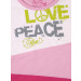 Powder pink and white sleeveless top with a round neck, has print on the chest and paneling on the chest