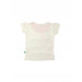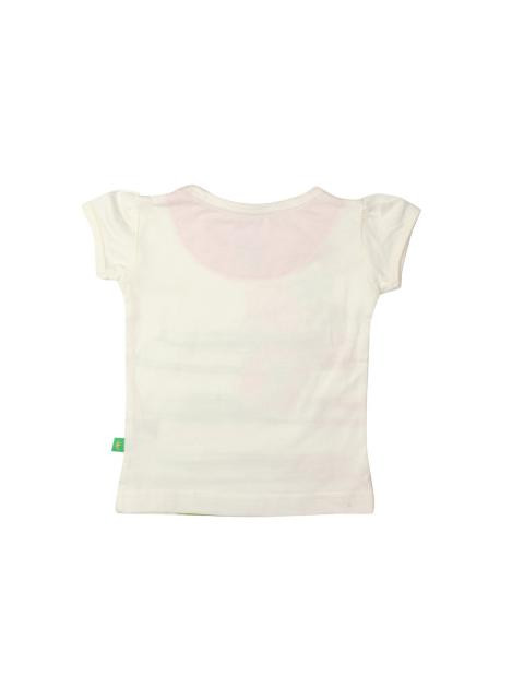 Off-white round neck top, has short puffed-sleeves, graphic print on the front