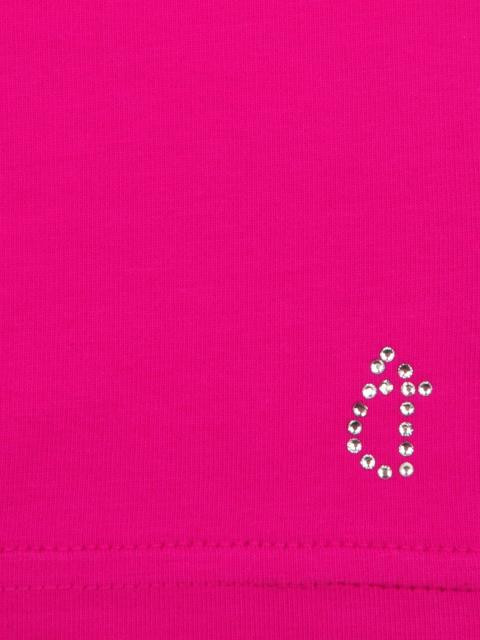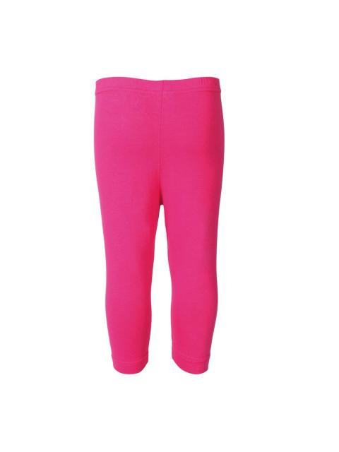 Pink leggings with an elasticated waistband and crystal embellishment above the left hem