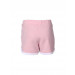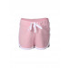 Pink shorts with a comfortable waistband with drawstrings, contrast panelling on the sides and at the hems and embroidered branding above the left hem