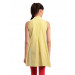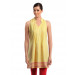Yellow tunic with pink stitched detail, woven, sleeveless, has a mandarin collar with a slit V neckline, back and front yoke, pink stitched detail on the front yoke, half buttoned placket with hook closure, pin tucks with pink stitched detail on either side of the placket and pink printed border in front at the hemline