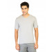 Grey V-neck T-shirt made of 95% cotton and 5% elastane, has a lay flat collar and half sleeves with ribbed wide hems with a brand badge on the left sleeve