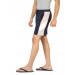 Dark blue shorts made of ComfortSoft 100% combed cotton, has grey and white panels with red piping on the sides, elasticated waistband covered with a ComfortSoft fabric and a drawstring