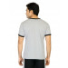 Grey T-shirt made of ComfortSoft 100% combed cotton, has a lay flat collar in black, crew neck and half sleeves in ringer style with black trim edges