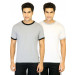 White T-shirt made of ComfortSoft 100% combed cotton, has a lay flat collar in grey, crew neck, and half sleeves in ringer style with grey trim edges
