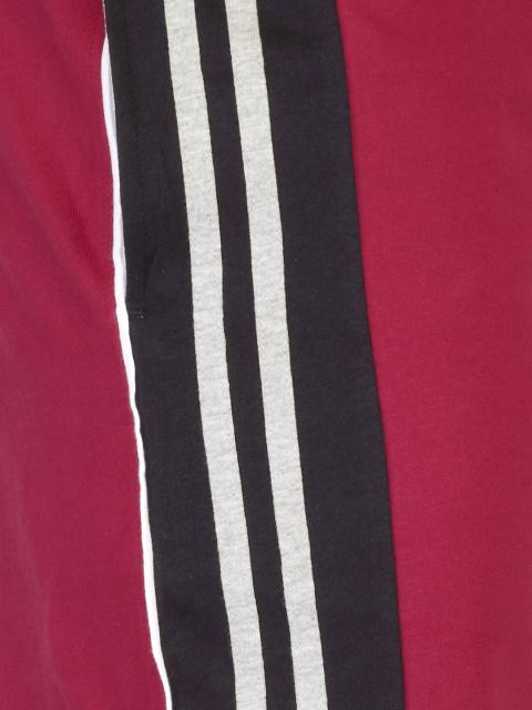 Red capris made of 100% combed cotton, has navy blue side panels with grey pipe detailing, elasticated waistband covered with a ComfortSoft fabric and a drawstring