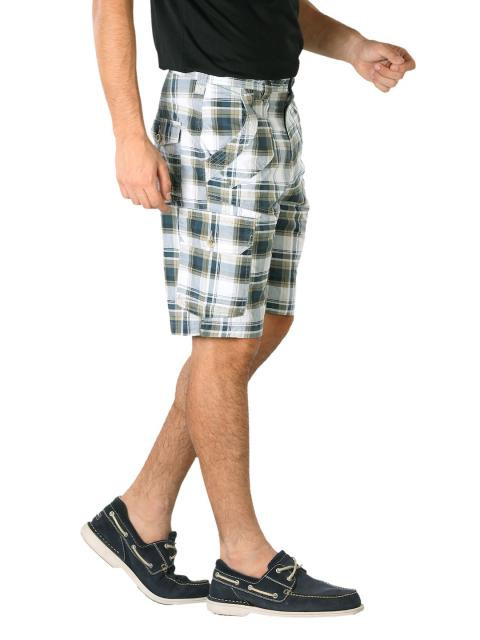Indigo Nation Men Check White And Khaki Shorts