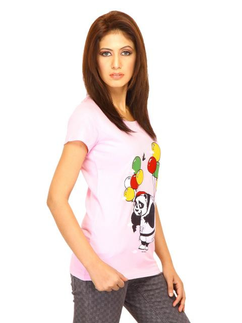 Pink round neck t-shirt made of 100% cotton, has short sleeves and graphic print on the front
