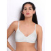 White bra, has a low neckline, underwired cups, bow detailing between the cups, double hook adjustable closure at the back with a back strap and adjustable shoulder straps