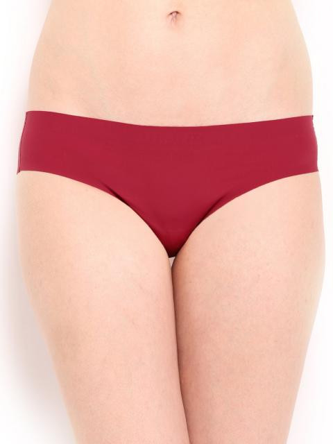 Maroon low-rise seamless briefs with an elasticated waistband and double-layered gusset